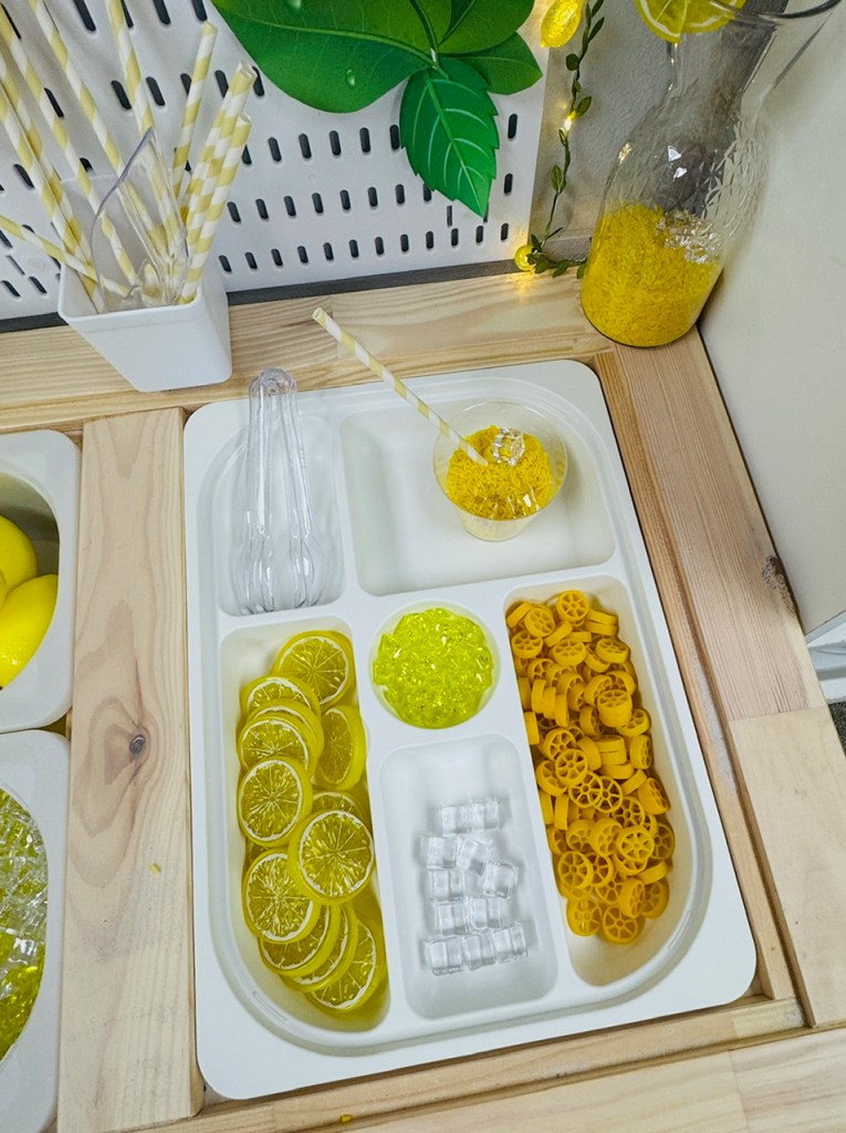 There’s something magical about a lemonade stand – the bright yellows, the sweet smell, and the joy of serving up something made “all by yourself”. Why not bring the magic indoors with a lemonade stand sensory bin? It’s a perfect summer themed activity that combines pretend play, fine motor skills, and sensory exploration!